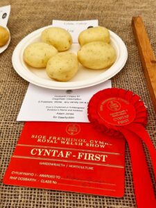 Wel roeddwn i’n bles dros ben i ddod i’r brig gyda fy nhatws …