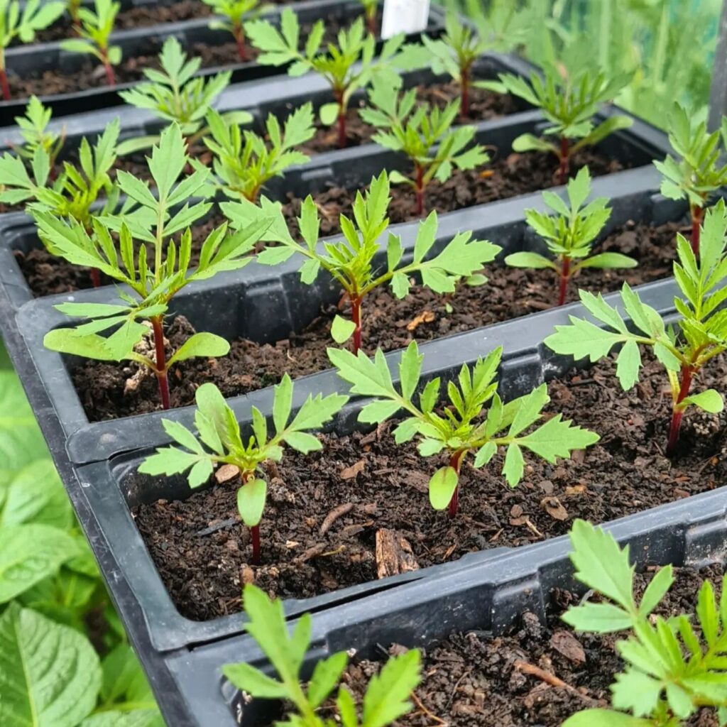 I absolutely love French Marigolds or Melyn Mair Ffrengig in Welsh. This is the first plant that I ever grew myself as a child and every year since the first time I am excited to see them germinate and grow – they’re just full of nostalgia